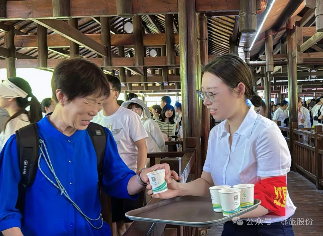 而在游客看不見的地方,100名志愿者早已就位,他們穿梭在景區的每個角落,為游客提供暖心服務。在38℃的高溫天里,景區不僅免費提供酸梅湯,還在纜車站加裝了霧森降溫系統,這份細致入微的關懷,讓來自重慶的王女士直呼"太貼心了"。
