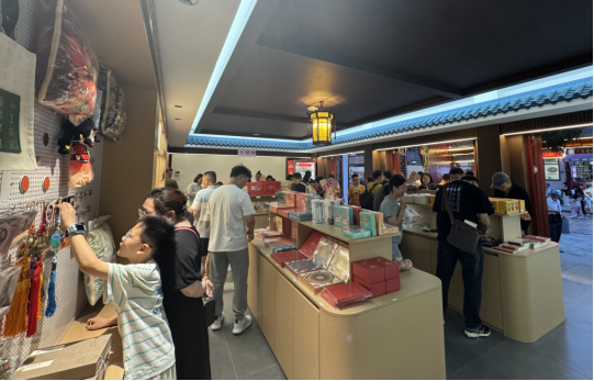 圖為游客正在“荊州手信”文創(chuàng)店購物